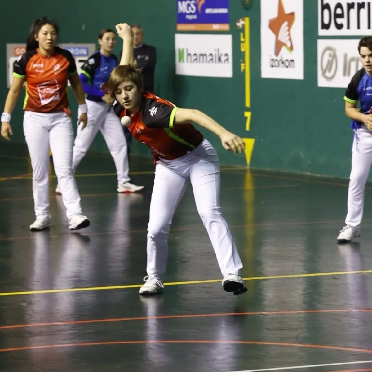 Harrera ona izan du txapelketak, bai publikoaren aldetik, bai eta pilotarien aldetik ere». Jada Binakako txapelketako sei jaialdi jokatu dira –orotara, 8 partida– eta, espero zitekeen bezala, berdintasuna nagusi da, nahiz eta Iturregi-Orbegozo bikotea koska bat gorago kokatu den, hiru partida jokatu eta hiruak irabazita. «Hasi besterik ez da egin eta faboritoez hitz egitea ausartegia iruditzen zait», onartu dio NAIZi Maite Ruiz de Larramendi Mujikak. Amaren abizena bizkarrean duela jokatzen ari da Binakakoa, praka zuriak jantziko dituen azken urtean, 43 urteko pilota ibilbideari amaiera emango baitio beasaindarrak.