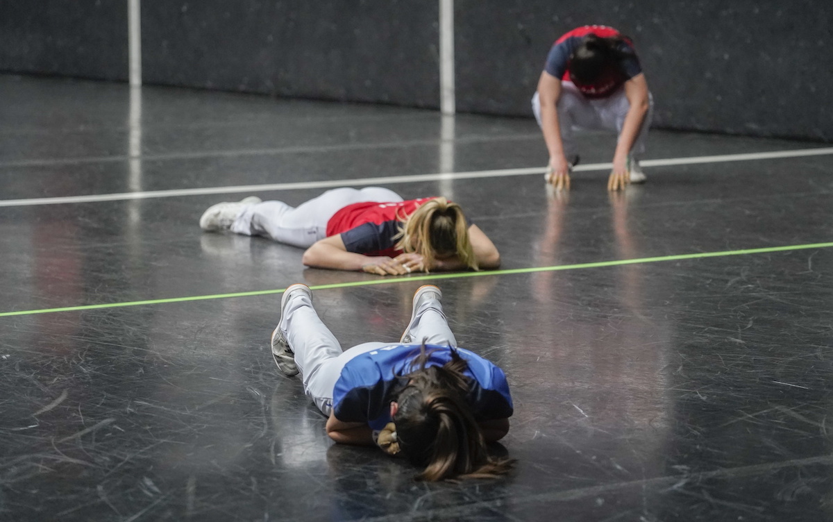 Hasiera parekatua izan du –eta hasieratik jokatu dira tanto gogorrak– baina 4-4ko berdinketaz geroztik, korrontearen kontrara igeri egitera behartuta ikusi dira gorriak. Sei tanto jarraian eginda (4-10), alde nabarmena lortu dute urdinek. Garai oso fin aritu da tantoak amaitzerako garaian eta Gaminde, bere mailarik gorenean, Capellan baino sendotasun gehiagorekin. Laukizkoak errezitala eman du, batez ere lehen erdian. Pentsa, 9-15ekoan bere bosgarren tantoa egin du eta une horretan, egindako tanto gehien pilatu dituen pilotaria zen, Amaia Aldairen aurretik.