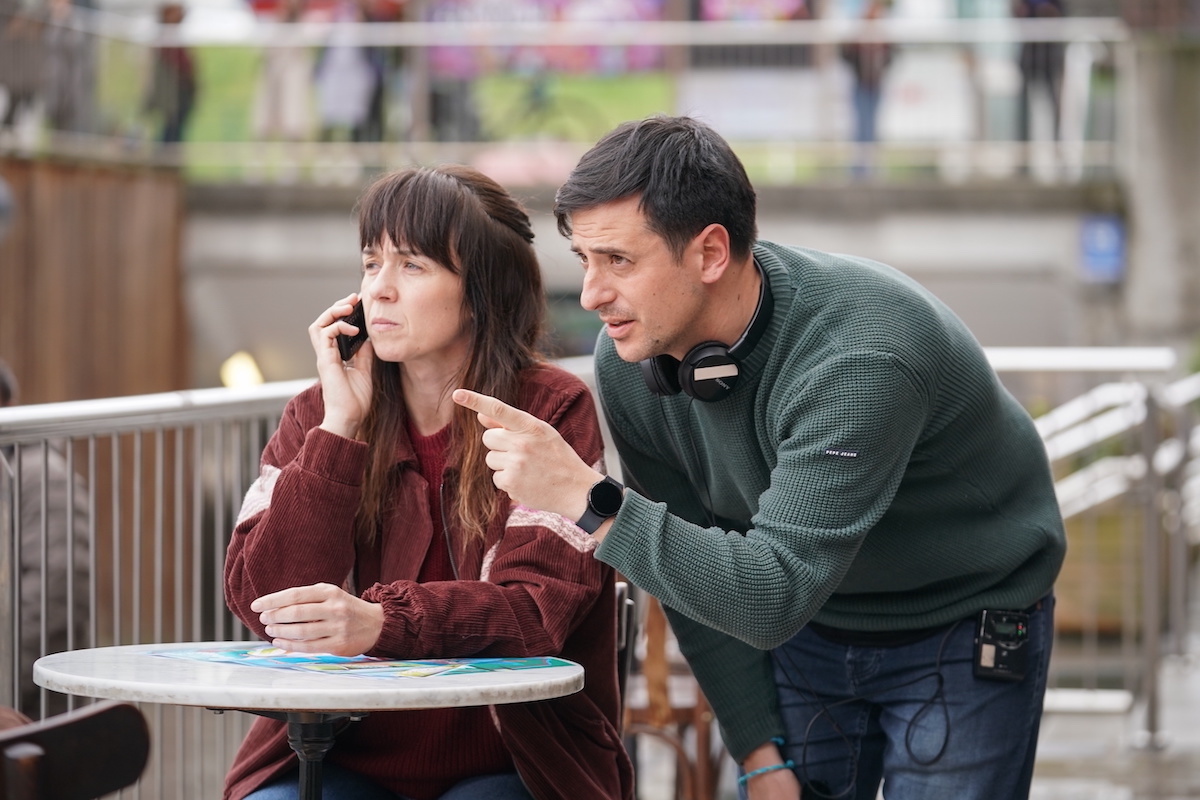 «Soinua grabatzen», «adi!, filmatzen ari gara» edo «entsegua!» bezalakoak entzun zitezkeen geltokiaren parean dagoen ‘La estación’ izeneko kafetegiaren terrazan. Bitartean, Miren Gaztañaga, Irune protagonista gorpuzten duen aktorea, zarata alde batera utzi eta bere baitan murgilduta zegoen.