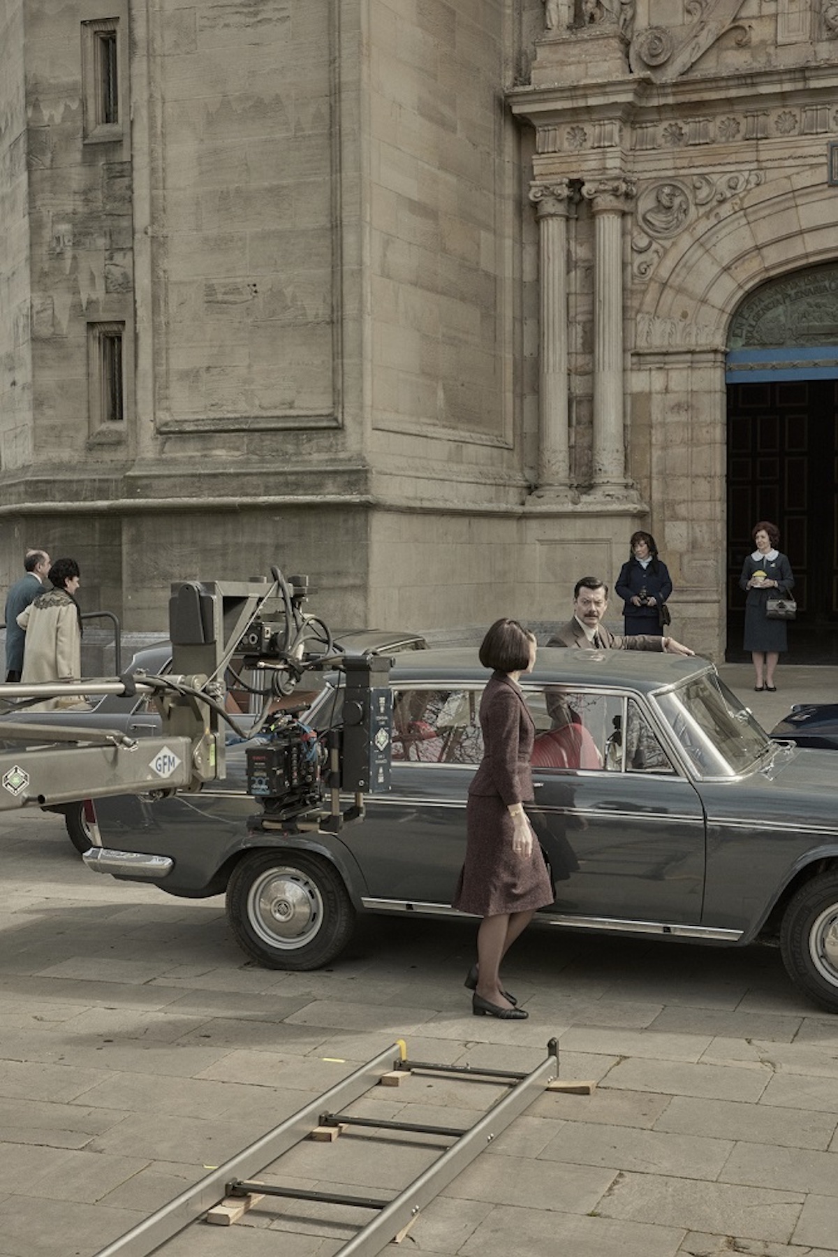 Rodaje de la película ‘8’ frente a la Basílica de Begoña. (Jorge FUEMBUENA | MORENA FILMS)