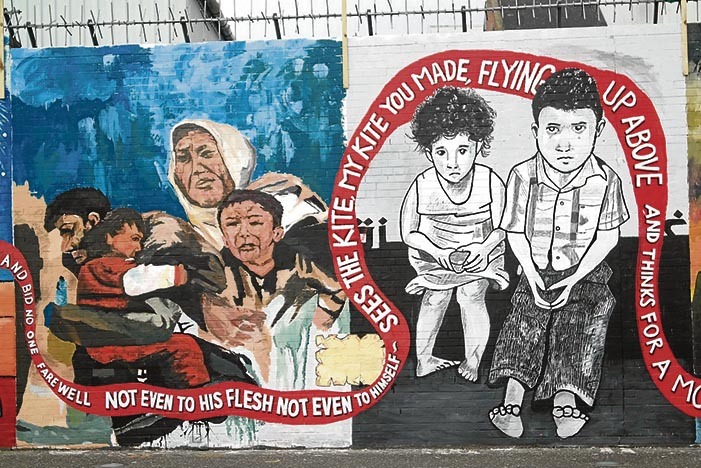 Zeruaren eta lurraren artean eraiki den infernua da Gaza, eta Belfasten ikus daitezkeen muraletan palestinarren eguneroko latza zein den nabarmen erakusten da.