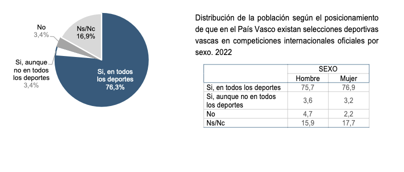 La citada encuesta del propio Gobierno de Lakua es rotunda también sobre este último extremo: preguntadas las personas sondeadas sobre si desean selecciones deportivas vascas en todos los deportes o solo en algunos, únicamente el 3,4% se decantó por esto último, mientras que más del 76% entiende que todas sin excepción deberían ser oficiales.