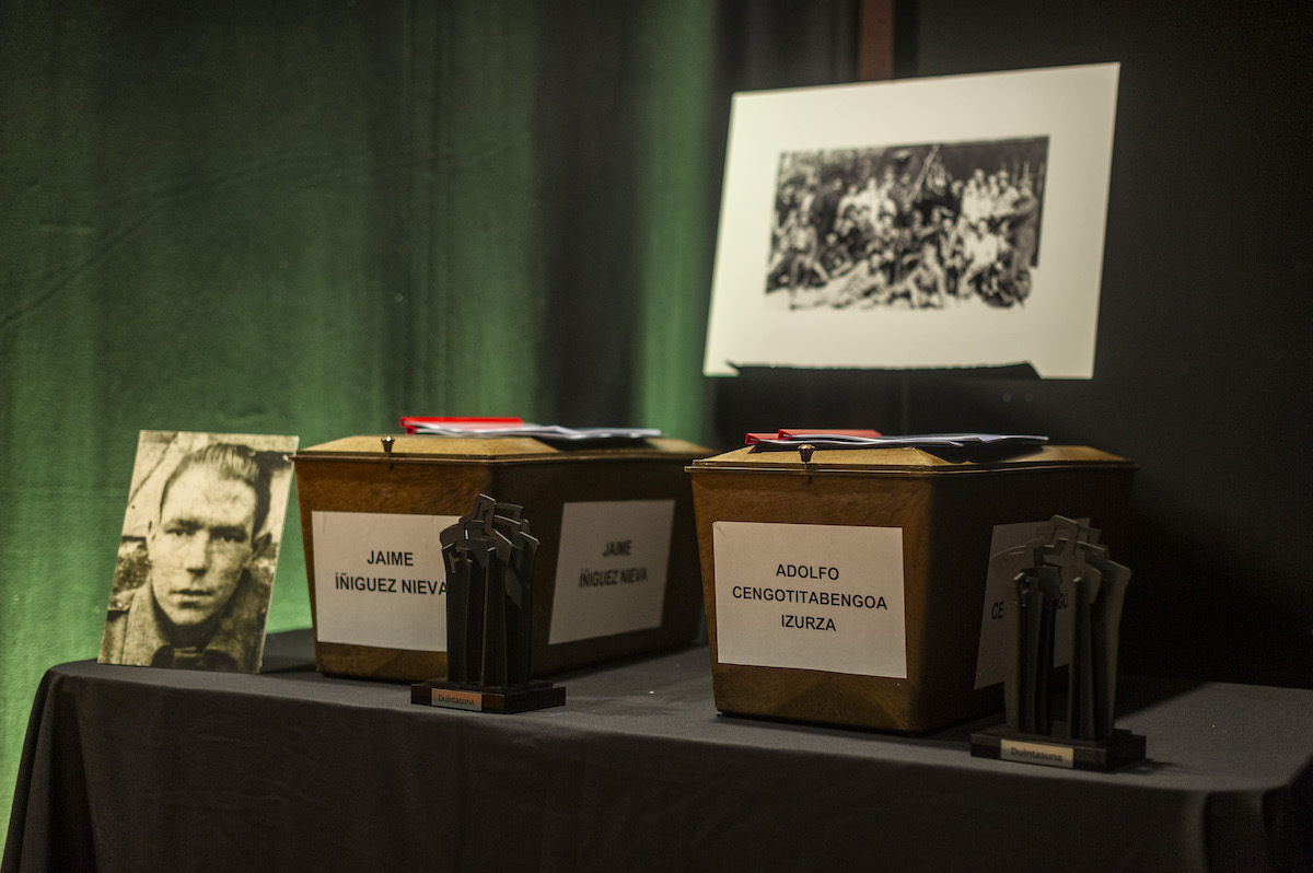 31 urte zituela hil zuten Cengotitabengoaren alabak jaso ditu aitaren gorpuzkiak eta Iñiguezen ilobei eman dizkiete 19 urte zituela hil zuten osabarenak. Biak ziren Euskadiko Alderdi Komunistara atxikitako Perezagua batailoiko milizianoak, Muskizekoa bata eta Ortuellakoa bestea, hurrenez hurren, eta biak hil ziren egun berean, hots, 1937ko apirilaren 7an, Cengotitabengoa Barazarko frontean eta Iñiguez Amorebieta-Etxanoko Ospitale Militarrean.