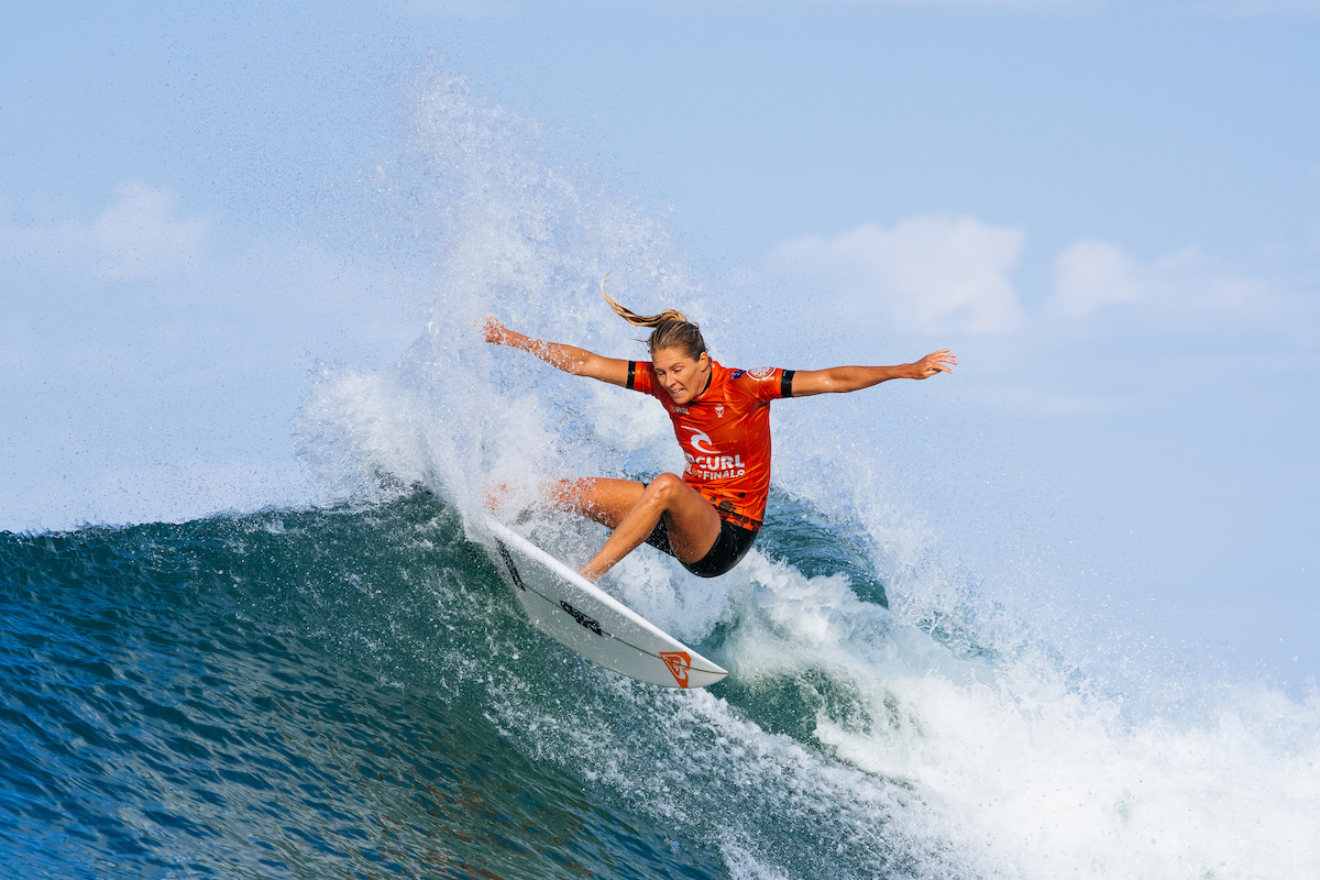 Stephanie Gilmore australiarra, bira bat egiten. (WORLDSURFLEAGUE.COM)