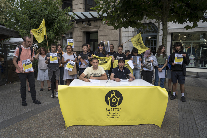 Groseko Etxebizitza Sindikatua den Saretxek astearte arratsaldean agerraldia egin du Azora funts putreak erositako jabetzen maizterrak pairatzen ari diren egoera salatu eta negoziaketara dei egiteko. Asegurua ordaintzeri uko egin zioten hainbat bizilagunek duela pare bat hilabete, helburua «exijentzia guztiak mahai gainean jarriko dituen negoziazioa martxan jartzea» izanik.