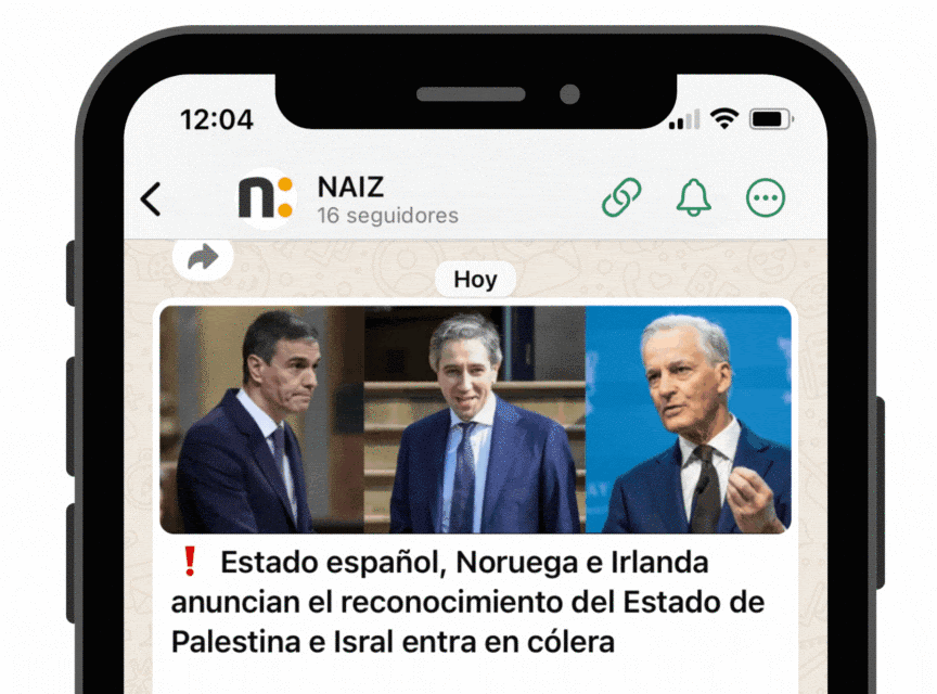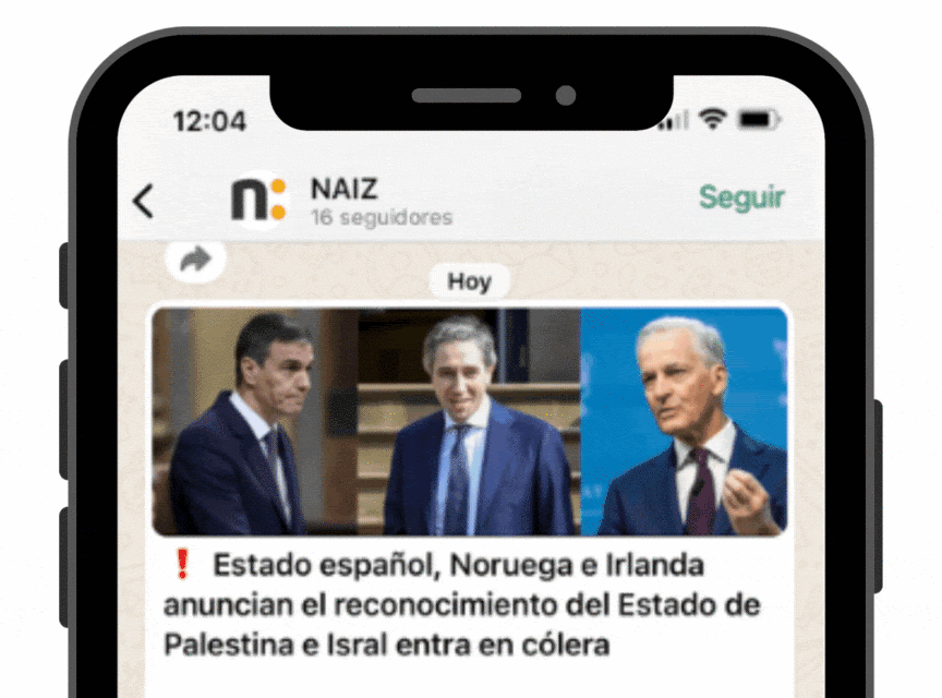 La opción de seguir la actualidad de NAIZ a través de Whatsapp se suma a las que ya se habían desplegado en las redes sociales X (el antiguo Twitter), la página de Facebook, el canal de Telegram y el de Instagram.