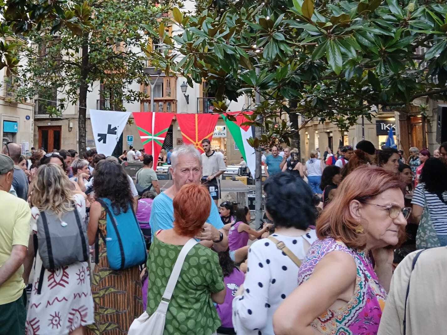 «Gauero okupatzen ditugu lapiko, taper eta platerekin Alde Zaharra, Egia eta Amara. Gure etxeetako suetan kozinatutakoak gose diren sabeleko jaia baretu eta hartu-emana zein elkar ezagutza elikatzen ditugu», adierazi du Mattik, eta txalo zaparrada batek erantzun dio, bero.