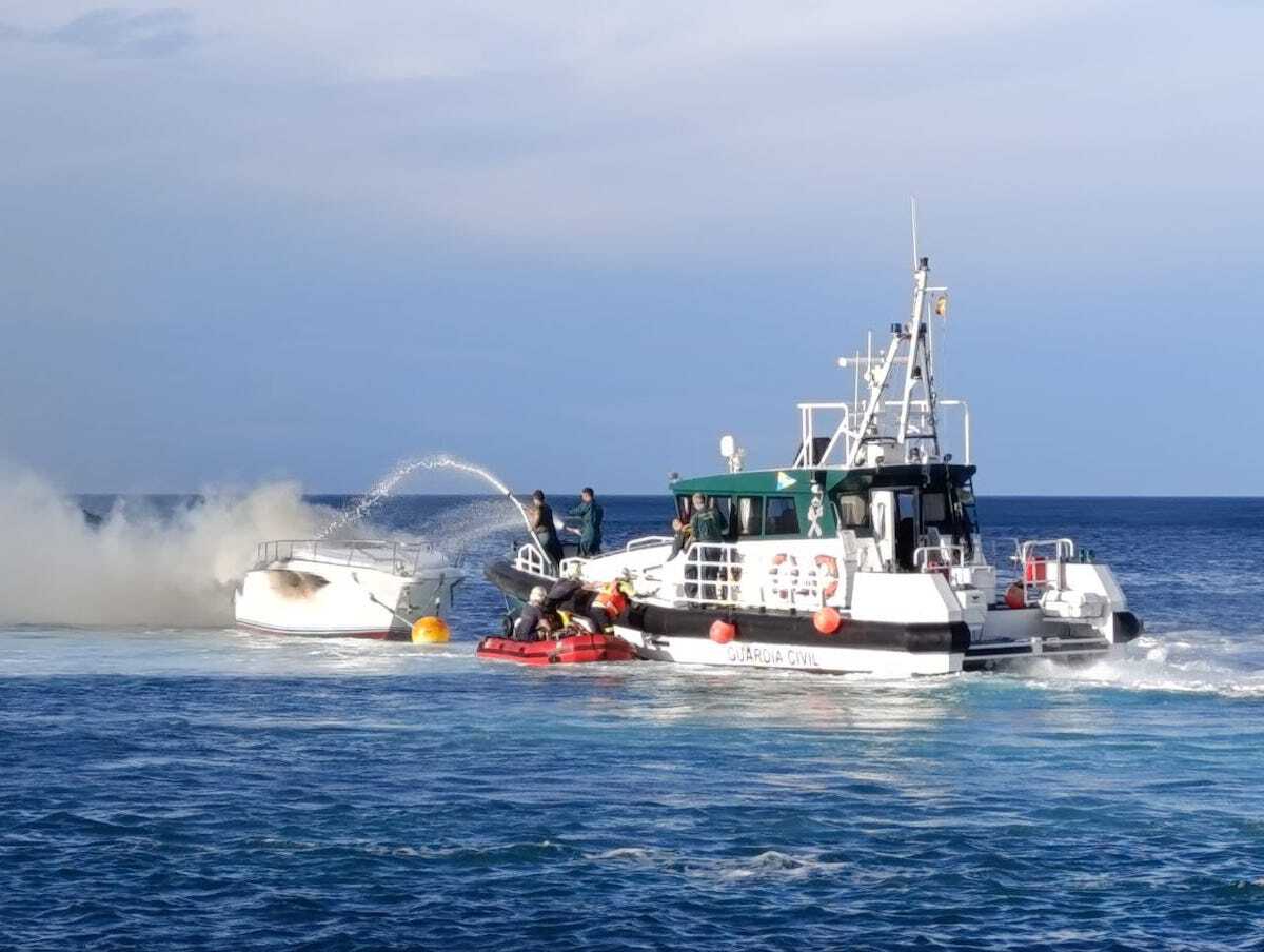 Este servicio de emergencias ha alertado a Salvamento Marítimo y a la Cruz Roja, al tiempo que también se han movilizado los bomberos y se ha dado aviso a la patrullera Río Lea de la Guardia Civil, que se encontraba a escasa distancia, con el fin de que pudiera sofocar el incendio con sus bombas de agua.