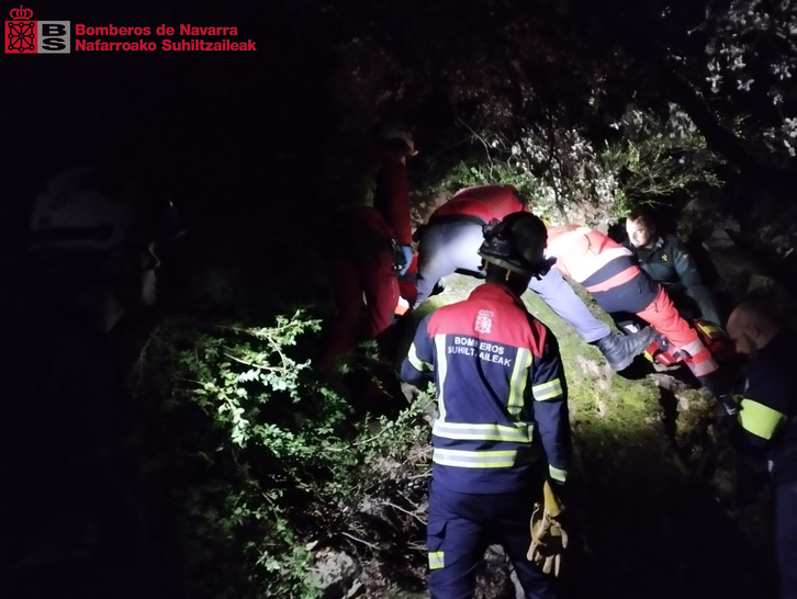 Efectivos de Bomberos han rescatado a los heridos, que han sido posteriormente trasladados al Hospital Universitario de Nafarroa, en Iruñea, por las ambulancias de soporte vital avanzado (medicalizadas).