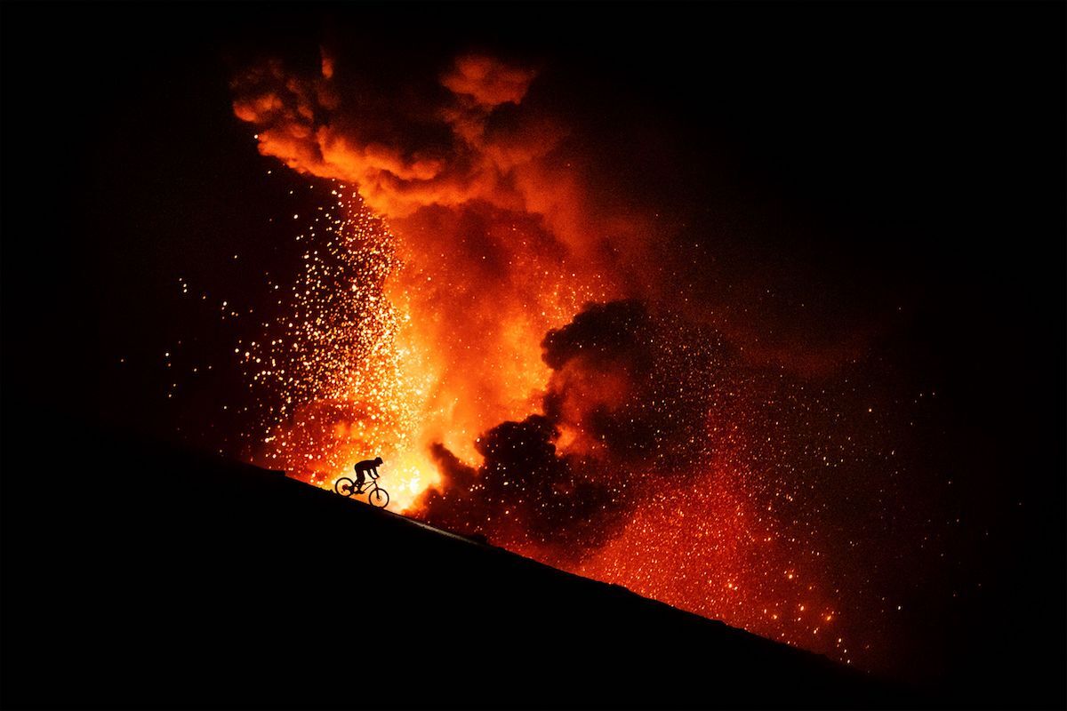 Aquariumean egingo den galan Liautard bigarrenez igo beharko da oholtzara; izan ere, ‘Fuego’-rekin hirugarren saria irabazi du. Ikusten denez, erupzioa lehertu den sumendi baten aurrean eta maldan behera doan rider baten profila erakusten du. Kilian Bron da aipatutako bi irudi horietako riderra; hots, mundu zabalean sona handia duen espezialista.