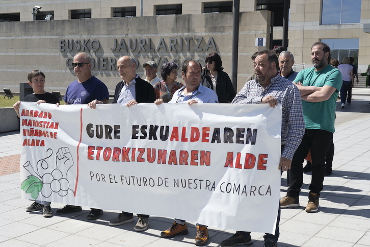 Concentración de Arabako Mahastiak ante Lakua en abril de 2023 tras el primer fallo, ahora refrendado. (Raul Bogajo | Foku)