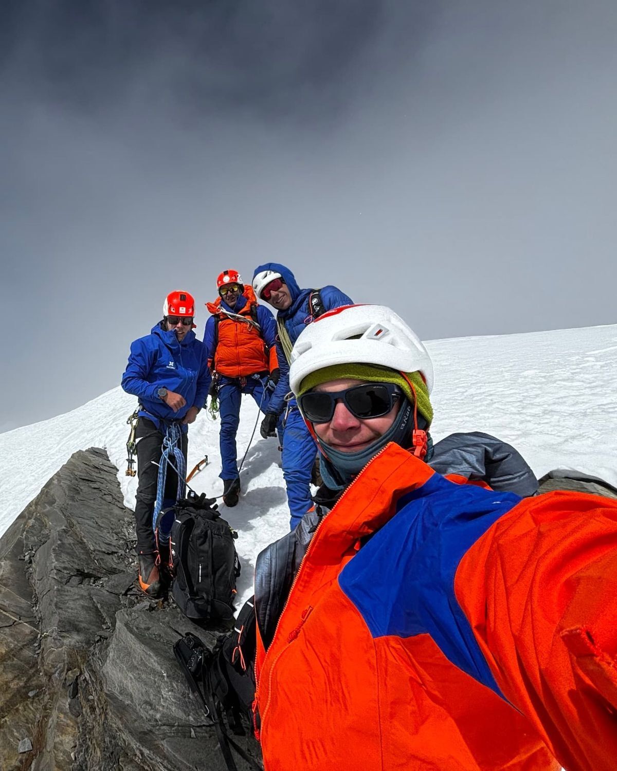 Bi eguneko eskaladaren ondoren, laukotea seimilakoaren gailurrean. (Jonas SCHILD)