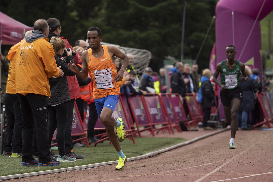 Aregawik ere, ordea, ez du atxera begiratzeko betarik izan, Kwizera ez delako etsitzeko egon. Tarteka lauzpabost segundoraino tartea zabaldu badu ere, Mintxetako futbol zelaiko atletismo pistara hurbiltzen hasi direlarik, dezente bertaratu zaio, ikusleen zoramenerako. Azkenean segundo bakarreko aldea atera dio Aregawik Kwizerari, igande eguerdiko atletismo festa biribilduz Mintxetako zirkuituan.