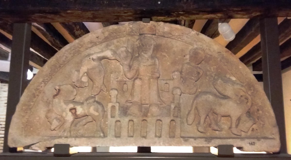 Más antiguo es un tímpano retirado durante la remodelación del siglo XIX y que se encuentra actualmente en el Museo Diocesano de Arte Sacro de Bizkaia. Se trata de una pieza de estilo románico que representa a Dios Padre sentado sobre un trono rodeado del tetramorfos (la representación simbólica de los cuatro evangelistas en su forma animal). Este tímpano está datado entre los siglos XII-XIII, más cercano a ese monasterio primigenio.