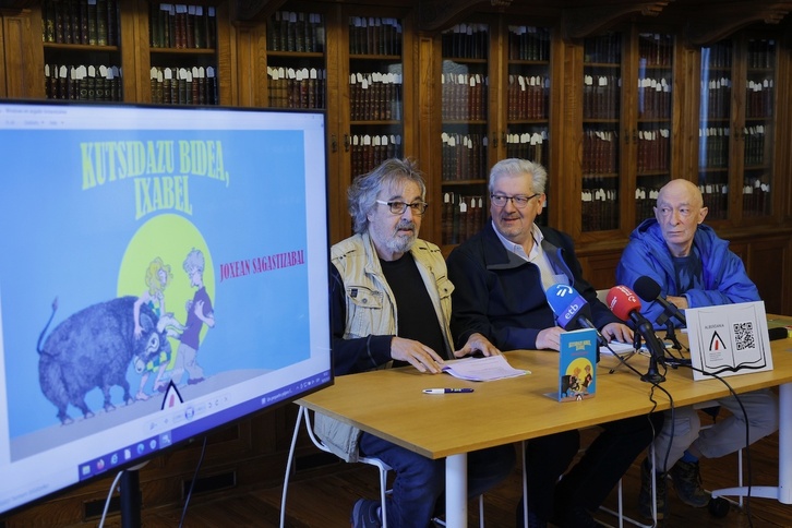Hitzaurrea egin duen Inazio Mujika Iraola editorea, Joxerra Gartzia –«ziri sartzaile edo Pepito Grillorena egiten», berak aitortu bezala– eta Joxean Sagastizabal bera izan dira edizio berriaren aurkezpenean, astelehen honetan Donostian.