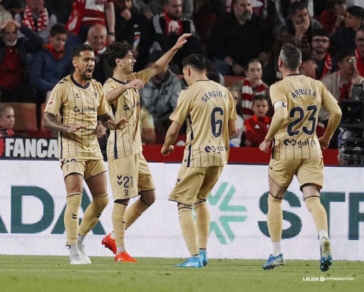 Seis habían enlazado, desde el 23 de marzo, sin ganar los azulgranas, que incluso la semana pasada veían rota la imbatibilidad de la etapa San José a manos del Mirandés. La tendencia a la baja de las últimas semanas, la victoria del Eldense, la visita a un rival mejor e igualmente necesitado de ganar en su caso para entrar en play-off, la ausencia de Bautista –a última hora se le ha unido la de Nolaskoain por una lesión muscular–... Era difícil pensar que la noche fuera a acabar como lo ha hecho: con una buena actuación, victoria, dos goles espléndidos y la permanencia en el bolsillo.