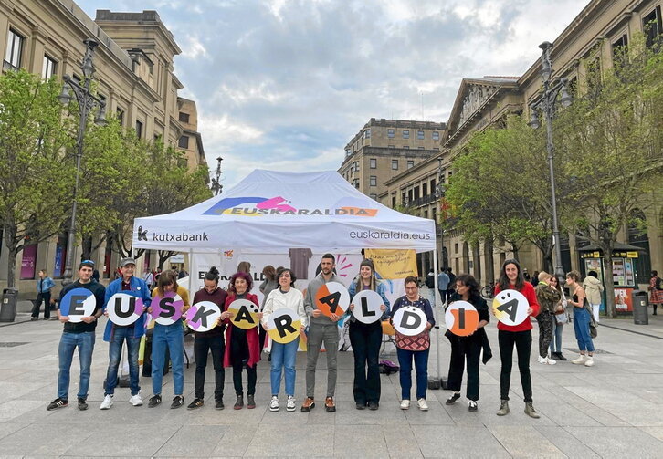 Euskaraldia zer den azaltzen duten euskarriak daude karpan -eskuorriak, ikusentzunezkoak...- jendeak argiago izan dezan zein den bere rola, ahobizi edo belarriprest, eta informazioa banatzen dute egingo den ariketari buruz. Horrez gain, aitzakiarekin, aprobetxatzen dute izen-emate txokoa edo txapak jasotzekoa jartzeko, baina Euskaraldia zertaz doan enteratu ez diren batzuk uste dute txapa horiek haurrentzako opari eraman ditzaketela, eta azalpenak eman behar dizkiete.