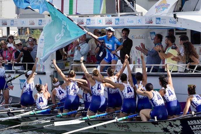 Arraun Lagunak Euskotren Ligako lidergoan are gehiago sendotu da Pasai Donibaneko erlojupekoan nagusitu ostean. Bost estropadatik lau eraman ditu ‘Lugañene’ ontziak orain arte, eta azken unera arte estututa izan bada ere, azken izerdi tantaraino zukutzeak sari eder askoa eman die donostiarrei.