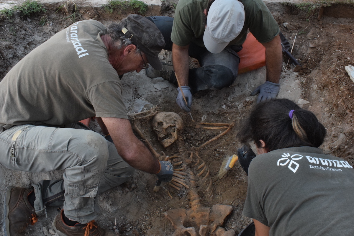 Han inguruan sei-zortzi lagunen gorpuak ere agertu dira, indusketetako aurkikuntza harrigarrienetako bat, oraindik argitzeko dauden misterioak utzi dituena. «Gorpu batzuk ekialdera begira daude, aldarearen norabidean, elizgizonak bezala», dio Morazak, «baina beste batzuk mendebaldera begira lurperatu zituzten, laikoen eran, eta kontua da han, legez, ezin zela inor lurperatu elizgizona ez bazen». Laborategian aztertzen ari dira gorpuak, hildakoen adina, sexua eta bestelakoak jakiteko, horrek galdera batzuk erantzungo dituelakoan. Erdi Aroko txanponak ere agertu dira gorpuekin.