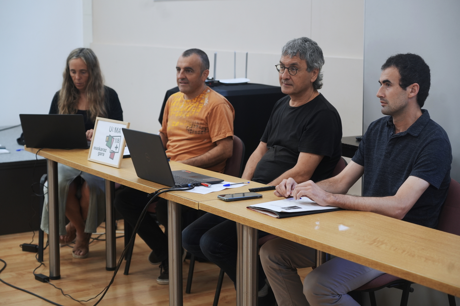Iñaki Iurrebaso, eskuinetik hasita bigarrena, 2036rako Siadecok UEMArentzat egindako proiekzioa aurkezten. Hori ere aztertu dute liburuan. (Jon URBE/FOKU)