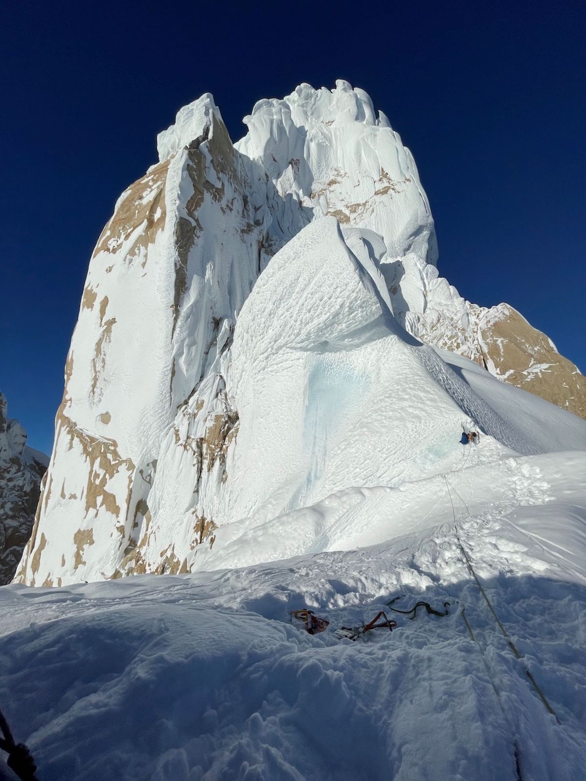 Eskalatzaile honek NAIZi adierazi dio Karakorumeko espedizioaren ondoren Chamonixera itzuli eta Patatagoniara joatea otu zitzaiola. Argi zuen helburua, aspalditik mamitzen ari zen Cerro Torreko bakarkako neguko lehen igoera. Hain zuzen ere, 'Ragni' bidetik. Mila metro luze den marra hori Cerro Torreko samurrena izan daiteke; bederen, azken urte luzeotan klasikoa bihurtu da. Hori 'alde' zuen; aurka, berriz, ibilbide horrek duen hurbilketa bidea. Zehazki esanda, mendilerroko luzeena: 45 kilometro.
