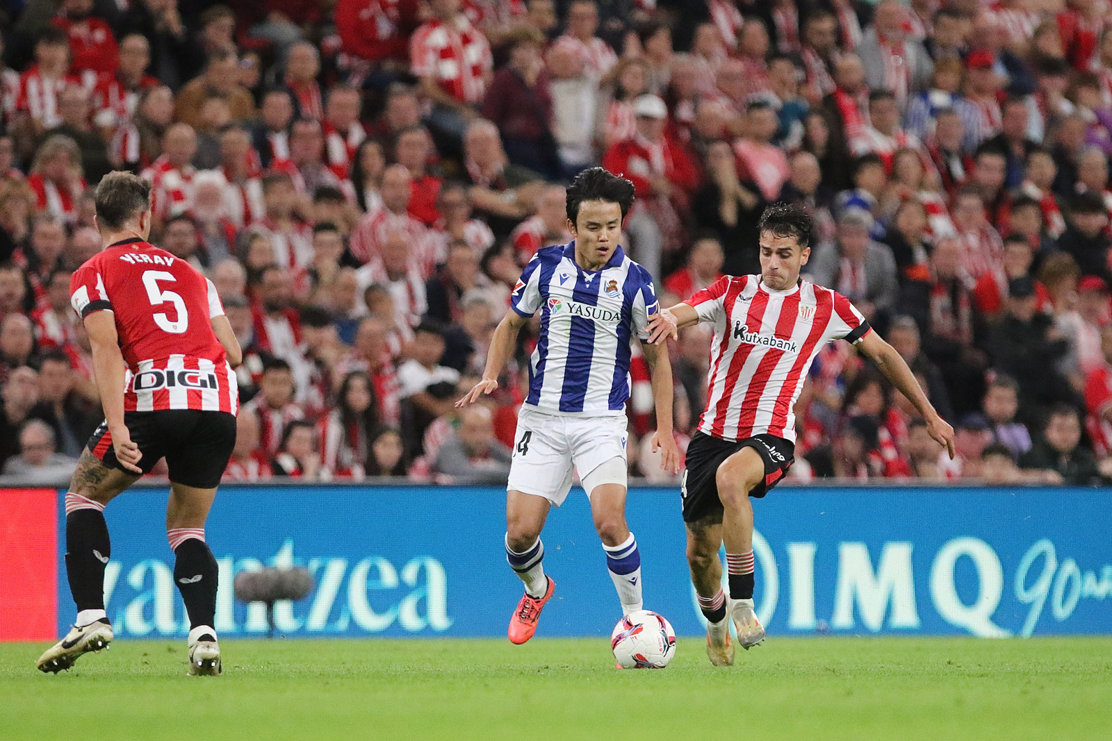 Liga hasiera kaskar baten ostean neurtuko dituzte indarrak Athleticek eta Realak larunbatean Anoetan jokatuko den euskal derbian. Hori dela eta, norabidea aldatzeko aukera paregabea dute bi taldek. Azken orduan Laporte sartu da zuri-gorrien deialdian eta Kubo berreskuratu du Sergio Franciscok.