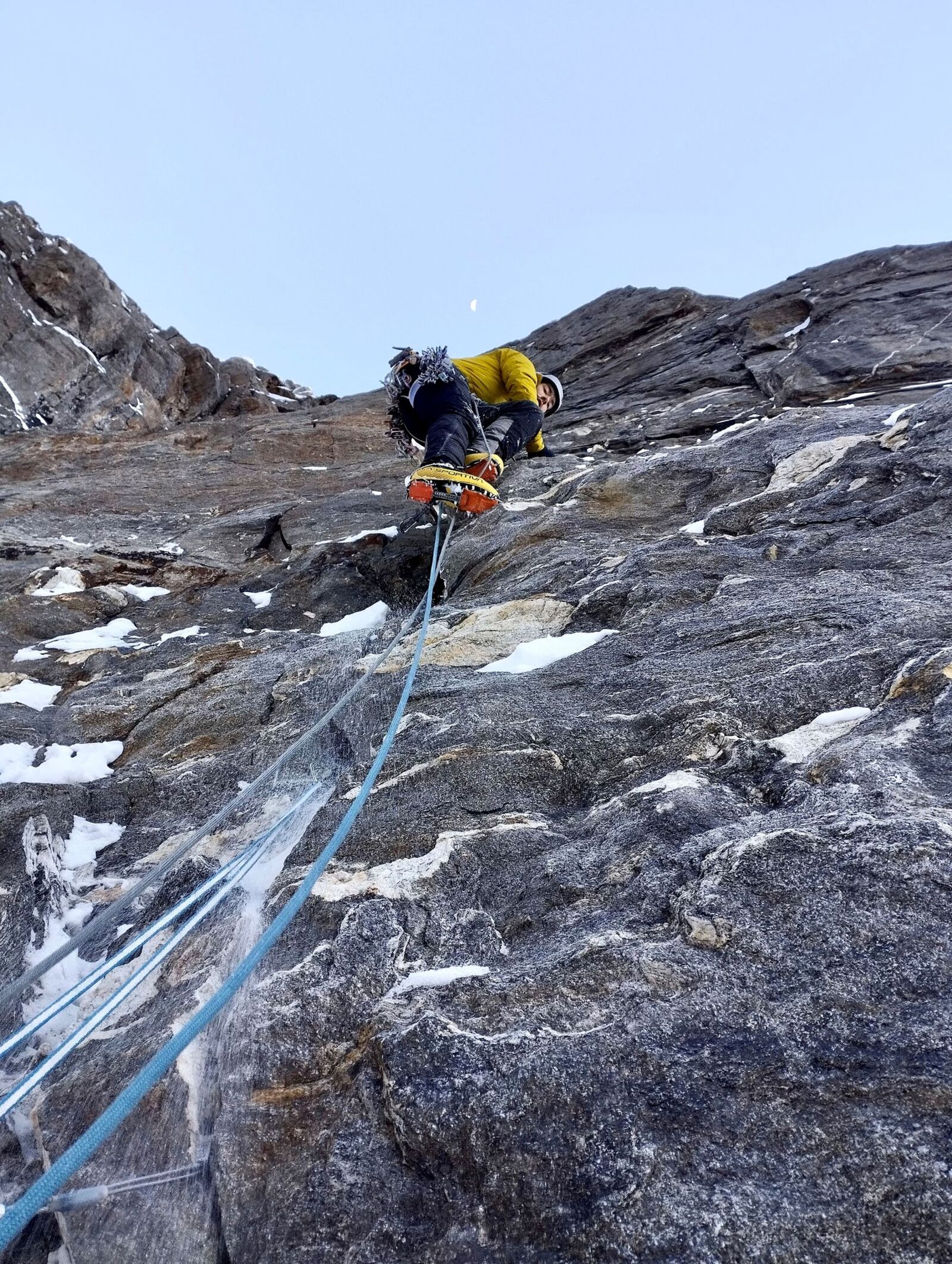 «Biharamunean, aipatu dugun sekzio hori zeharkatu behar genuen. Aukera bakarra zen iparraldeko isurian dauden izotzezko aldatsetan sartzea. Rappelatu eta zeharkaldian luze batzuk egin eta gero, kale itsu batean sartu ginen. Iragarritako ertz horretara heltzea oso zaila zen. Halere, hiruzpalau luze egin eta ohartu ginen ezin izango genuela aurreikusitako leku horretara heldu. Bibakera itzuli eta biharamunerako utzi genuen erronka hori».