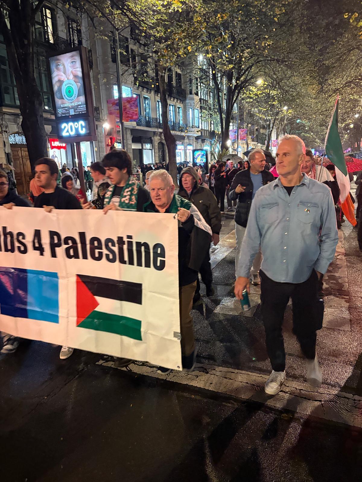 Euskal Herrian ondo jan, Bilbo ezagutu, Gernikako Bakearen museoan 1937ko bonbardaketaren berri izan, orduko babeslekuak ezagutu, argazkiak egin, garagardoak edan, Gernikako arbola bisitatu eta ondo bazkaldu ostean, Euskal Herria eta Palestinaren aldeko manifestazioan ere parte hartu zuten, San Mamesera joan aurretik: “Egun historikoa, asteburu bikaina, Palestinako banderak ikusi dituzte etxeetako balkoietan, giroa kalean, sekulako manifestazioa, San Mames osoa beterik; Euskal Herriaren zein Irlandaren nazio eskubideak aldarrikatzen, futbol selekzioaren ofizialtasuna, eta bereziki elkartasuna lantzea, ozenki eta ez burumakur, sekulakoa izan da beraientzat».