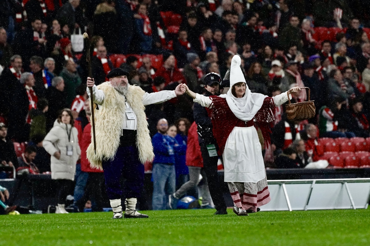Olentzero y Mari Domingi no quisieron perderse el último partido del año (Marisol RAMIREZ | FOKU)