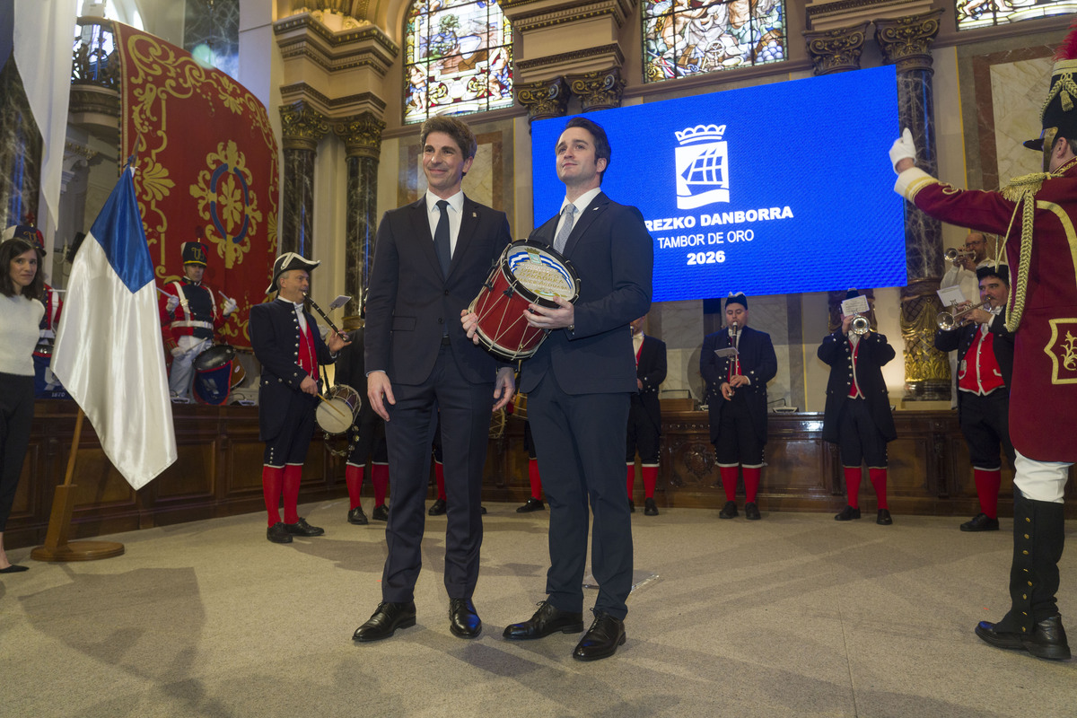 Udaletxe barruko emozioak ere intentsoak izan dira. Xabier Anduaga Martinez opera eta zarzuela tenore donostirrak hunkituta jaso du Jon Insausti Maiesterrena alkate berriak eman dion Urrezko Danborra. «Donostia ez da jaio nintzen lekua bakarrik, munduari begiratzeko ikasi nuen modua da. Gauza garrantzitsuak mantso, zaratarik gabe, irmo eta xume eraikitzen direla ulertarazi dit», erran du.