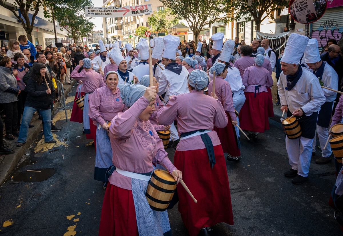 2019an atera zen lehendabizikoz, pandemia aurretik, kasualitatez, ordura arteko kantinera haurdun gelditu eta bere ordez ateratzea eskaini baitzioten. «Baiezkoa eman nuen, eta erabakirik onena izan zen. Santa Maria, Konstituzio plaza, Sarriegi plaza, Trinitate plaza... Toki enblematikoetan desfilatzen dugu, eta ‘Bagera’ jotzen dugunean oilo-ipurdia jartzen zait. Jada nire gurasoak ez daude, umeak kanpoan bizi dira, eta hunkitu egiten naiz», kontatu digu negar malkotan. Gu ere jaira gonbidatu gaitu, eta bertako zein kanpoko, denentzako festa dela azpimarratu du.