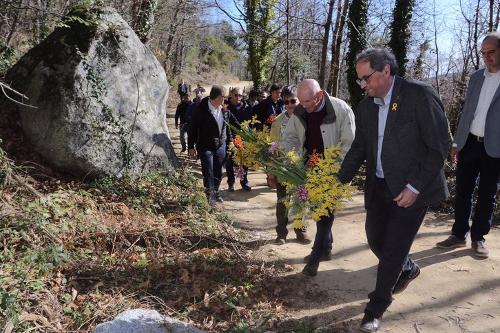 El president de la Generalitat, Quim Torra, y el lehendakari Juan José Ibarretxe han recorrido juntos este mediodía el mismo camino que hace ochenta años José Antonio Agirre y Lluís Companys emprendieron con futuro incierto pero con una certeza: el destino de sus respectivas naciones iba a ir de la mano.