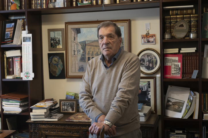 «¿Cómo conocí a Telesforo? ¿Qué imagen tenía de él? Yo veía que Telesforo era euskaldun, él tenía un concepto claro de que somos un pueblo y que teníamos nuestra cultura, idiosincrasia y costumbres. Creía que no éramos ni mejores ni peores que otros, pero sí un pueblo con una identidad propia. Pero teníamos un gran defecto. No éramos capaces de emplear nuestra identidad, porque estábamos dominados por España y Francia y eran ellos los que mandaban. Telesforo estaba muy preocupado con eso». Jose Luis Elkoro abre las puertas de su casa a NAIZ para hablar con calma y detalle sobre el histórico Telesforo Monzón a 40 años de su muerte.