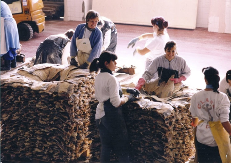 Pysbe enpresaren itxierak bakailao industriaren gainbeherari hasiera eman bazion ere, jarduera ekonomiko honek segida izan zuen XXI. mende hasiera arte. Lerroon gaineko irudian, hainbat emakume bakailaoa manipulatzen Pasaiako lantegi batean 1998an (Iturria: Euskal Itsas Museoa).