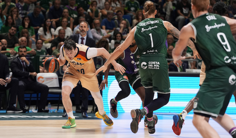 Luego está un Howard Sant-Roos Olano que, con un triple a tablero, rompió el primer partido de semifinales ante Unicaja. El escolta habanero sufre con el tiro exterior, pero le da a Sito Alonso y sus compañeros una amplitud ciertamente notable en el puesto de escolta, sobre todo en tareas defensivas y para ejercer la multidirección. Por otro lado, Dylan Ennis no es, como dijo un osado en las redes sociales en su día, «un Markus Howard sin marketing». ¡Más quisiera el escolta canadiense, que firma un 31% en triples! Pero con su combinación de capacidad penetradora y de pase es una amenaza constante a la que no está sabiendo hacer frente Unicaja.