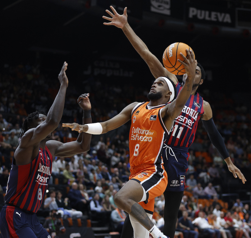 Con todo, el cuadro baskonista no ha podido fiarse ni un poco de su rival, que a oleadas y pese a perder a Jaime Pradilla por un golpe en la espalda, ha retornado a la carga con un parcial de 6-0, en buena medida porque la defensa taronja ha ajustado mejor sobre Forrest y también ha empezado a imponerse en el rebote. Así las cosas, un mate de Reuvers a la contra ha propiciado el tiempo muerto de Pablo Laso, con 60-64 a su favor.