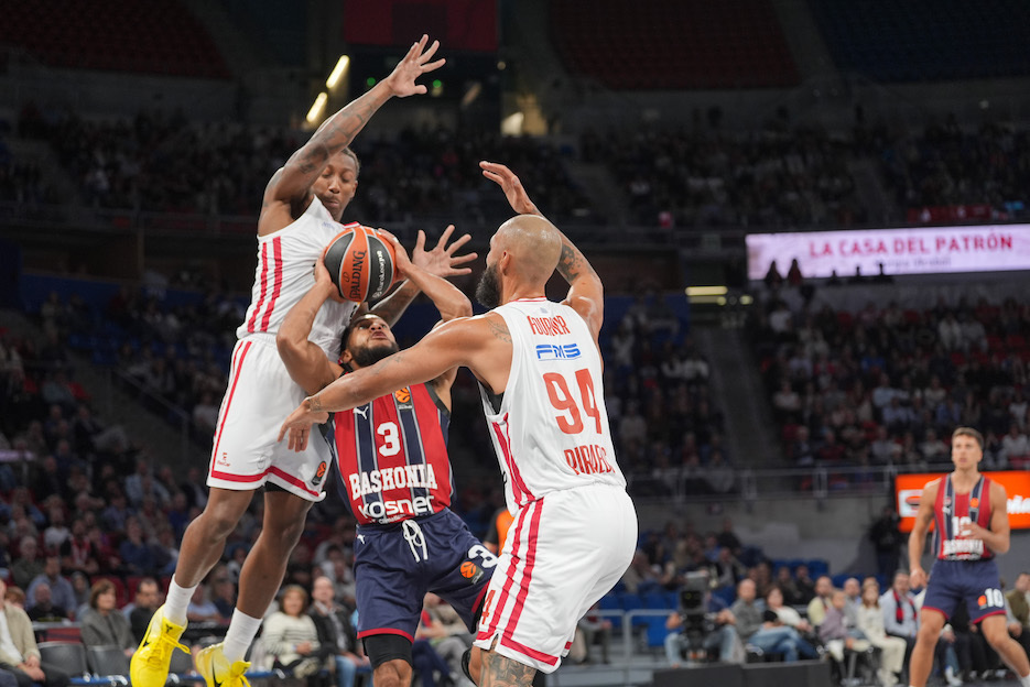 La titularidad de Sedekerskis, jugando de ala-pívot desde el primer momento en detrimento de Clément Frisch ha sido la primera gran sorpresa del técnico baskonista. Pero con sorpresa o sin ella, el arranque ha sido un bofetón de realidad en toda regla: parcial de 0-10 que ha obligado a Galbiati a pedir tiempo muerto después de que Olympiacos haya desarbolado a un Baskonia siempre un paso por detrás, repartiendo sus puntos entre Vezenkov, Dorsey y Milutinov –sumando además tras rebote ofensivo–, mientras que los gasteiztarras han sufrido hasta para tirar a canasta, y sin el premio del rebote ni los puntos.