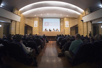 Miembros de Podemos, PNV y EH Bildu, entre los más de 150 participantes del Foro Social NAIZ 2016.01.28