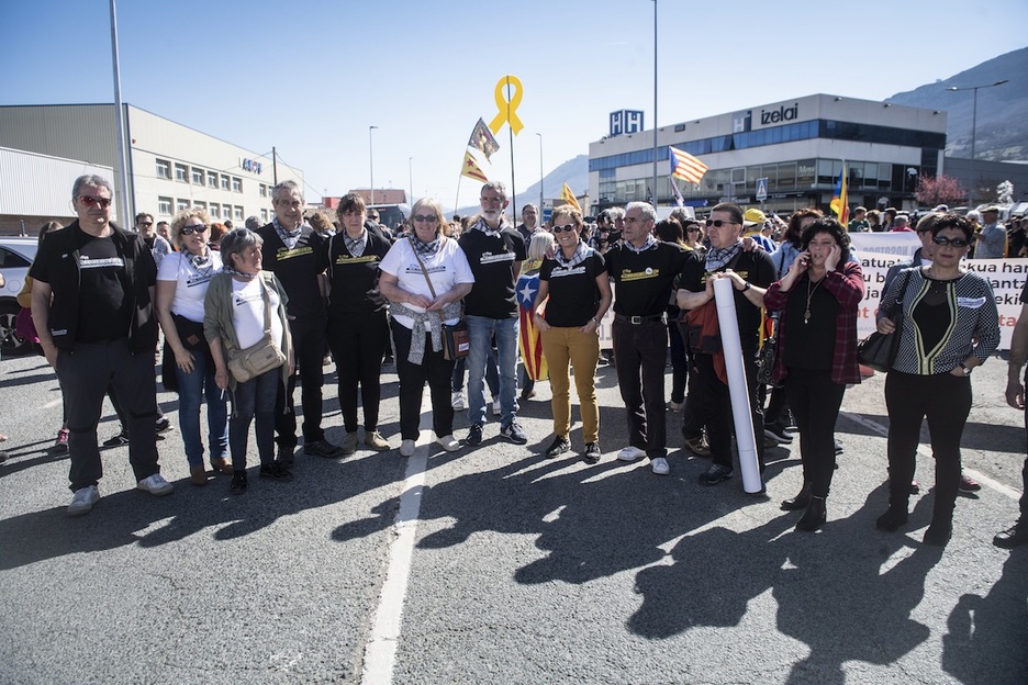 Familiares de los jóvenes encarcelados, antes de iniciarse la marcha. (Jon URBE/FOKU)