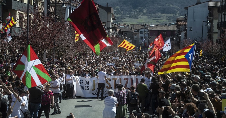 Multitudinaria ha sido la manifestación que ha colapsado hoy las calles de la localidad navarra de Altsasu, de apenas 7.500 habitantes. Ciudadanos llegados de diferentes puntos del Estado han acompañado en esta jornada a los manifestantes vascos que han reclamado justicia para los jóvenes encarcelados. Una demostración de fuerza solidaria.