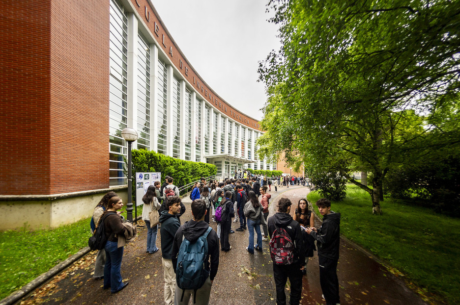 Los jóvenes que se examinan en Gasteiz esperan para entrar en la Escuela de Ingeniería. (Jaizki FONTANEDA | FOKU)