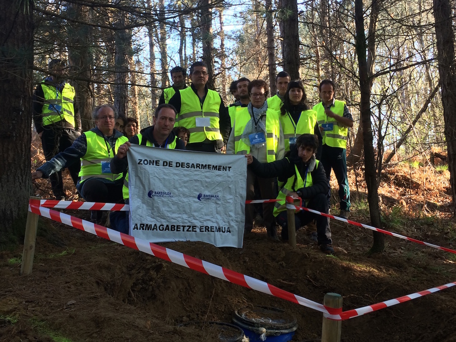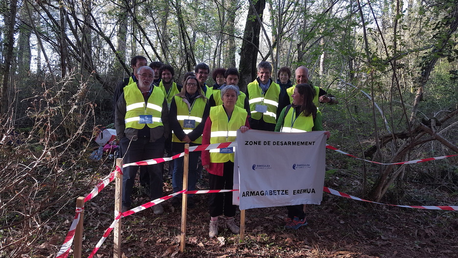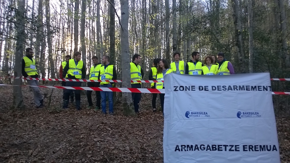 Goizean goizetik 172 bakearen artisau ETAren armategietara joan dira desarmea arrakastatsua izan dadin behatzeko xedez. Zulo horien kokapena argitaratu dute bakearen artisauek. Argazkiak: Bakearen artisauak