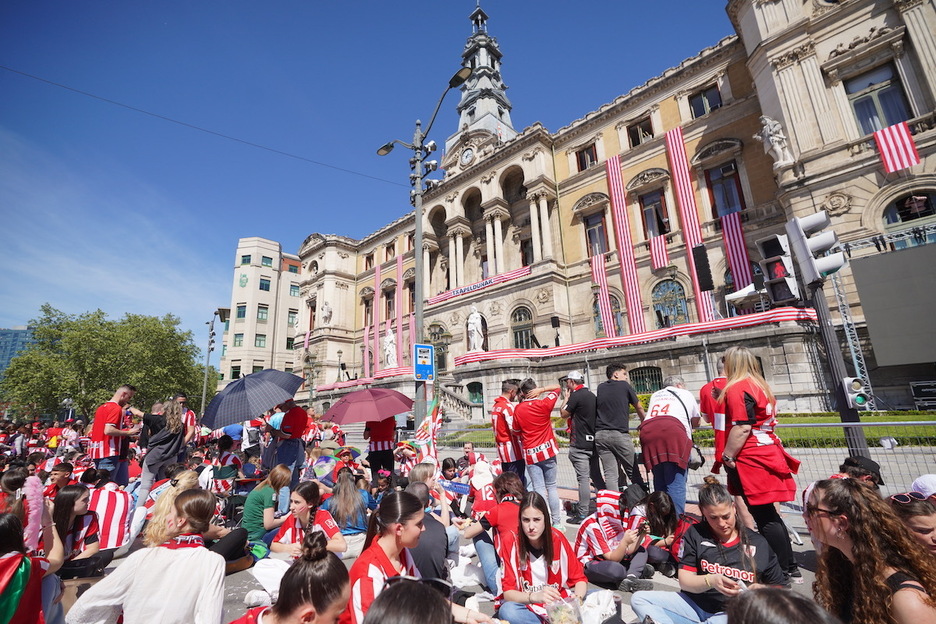 L'attente des supporters devant l'hôtel de ville de Bilbo. (Endika PORTILLO | FOKU)