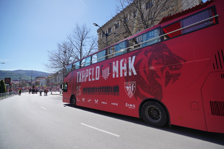 Le bus des champions prêt pour le défilé. (Endika PORTILLO | FOKU)