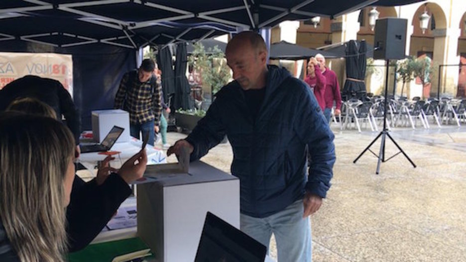 Iñigo Vertiz, Hondarribia taldeko arraunlaria, botoa ematen. (@HartuHitzaIrun)