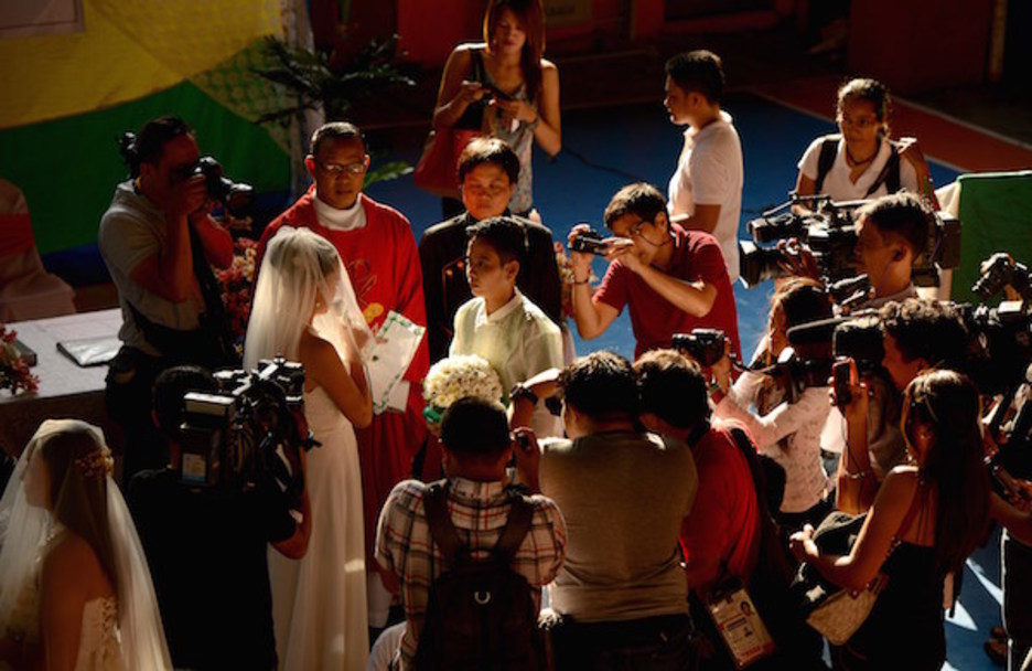 <strong>Manila</strong>. Dos mujeres participan en una boda, el lider de la Iglesia Católica en Filipinas se ha mostrado contrario a las bodas de gays y lesbianas (Noel CELIS | AFP)