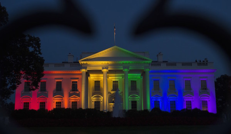 <strong>Washington</strong> la casa blanca con los colores del arco iris, tras la legalización en todo el país de las bodas de gays y lesbianas. (Molly RILEY | AFP)