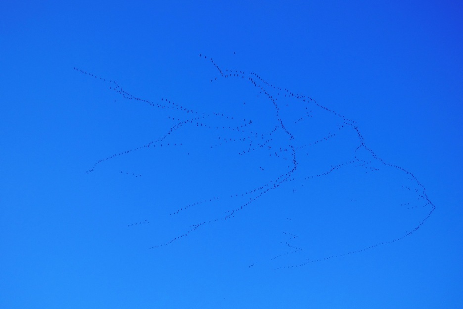 En su paso las grullas hacen y deshacen dibujos a capricho. (Iñaki VIGOR)