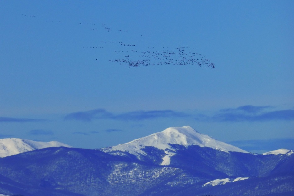 Espectáculo de grullas, con el Orhi al fondo. (Iñaki VIGOR)