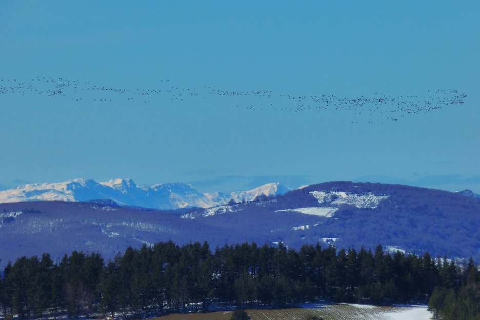 Miles de grullas atraviesan estos días las montañas vascas. (Iñaki VIGOR)